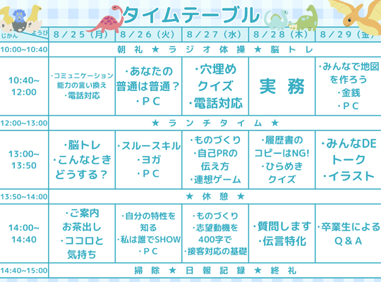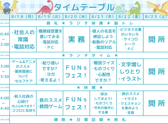 週間予定表 | 相模原市・淵野辺 就労移行支援事業所FUNs(ファンズ) ブログ