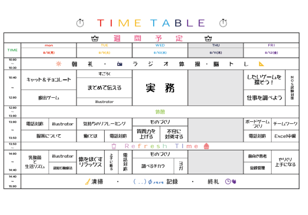 FUNsでは、1週間ごとに様々なプログラムを準備しています♪