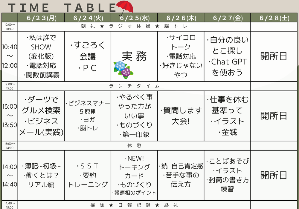 FUNsでは、1週間ごとに様々なプログラムを準備しています♪