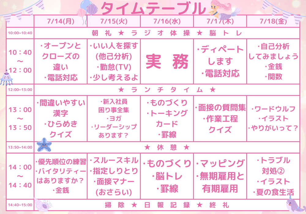 FUNsでは、1週間ごとに様々なプログラムを準備しています♪