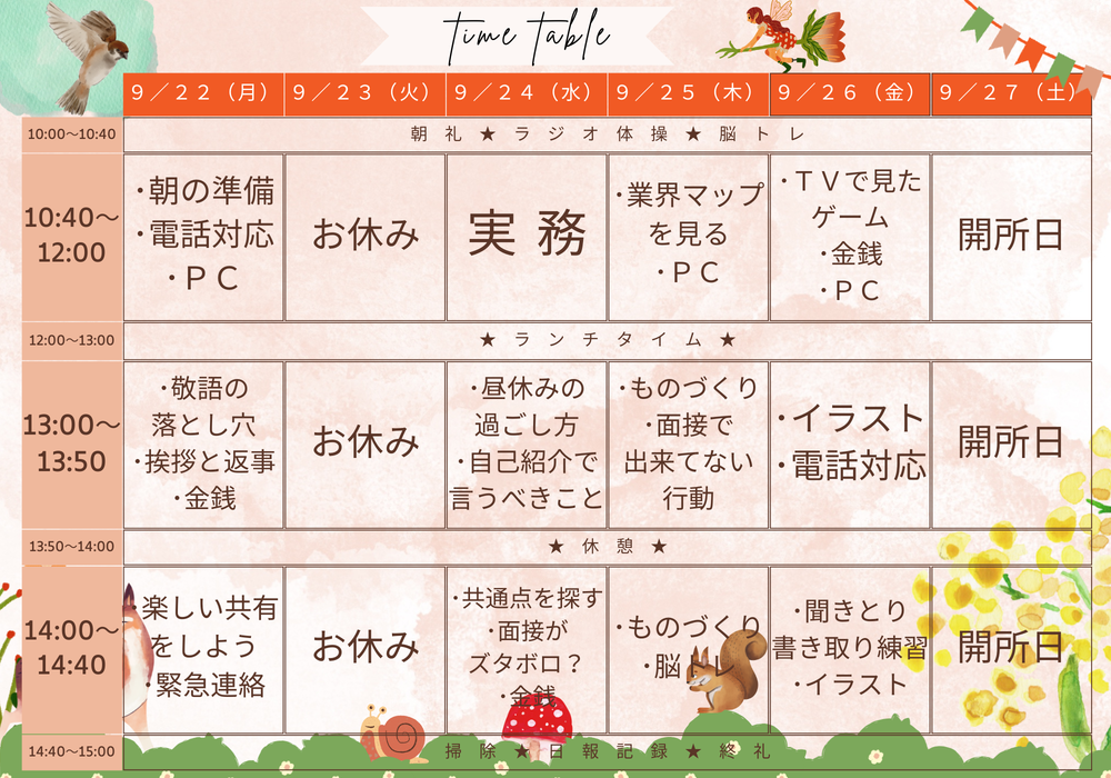 今週のプログラムは、こんな感じです★