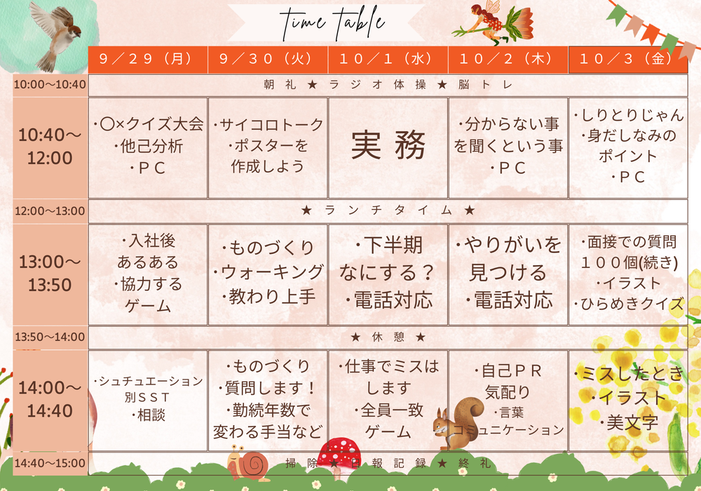 今週のプログラムは、こんな感じです★