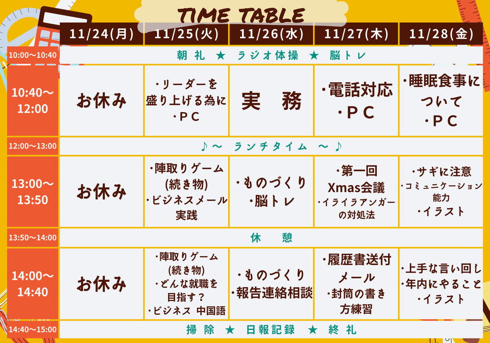今週のプログラムは、こんな感じです★